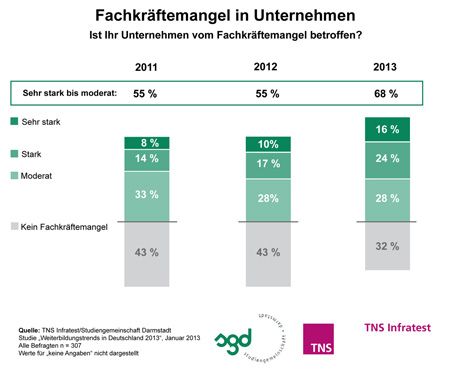 wird klar: Innerhalb von zwei Jahren (2011-2013) stieg der Fachkräftemangel enorm an.
